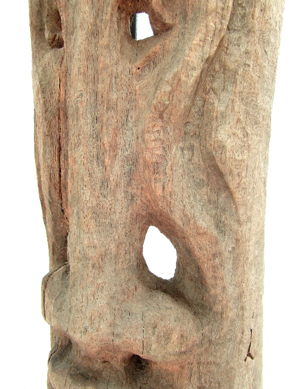 Very large wooden Oceanian mask head on metal display stand aged and weathered 81"H 24"W 24"D
